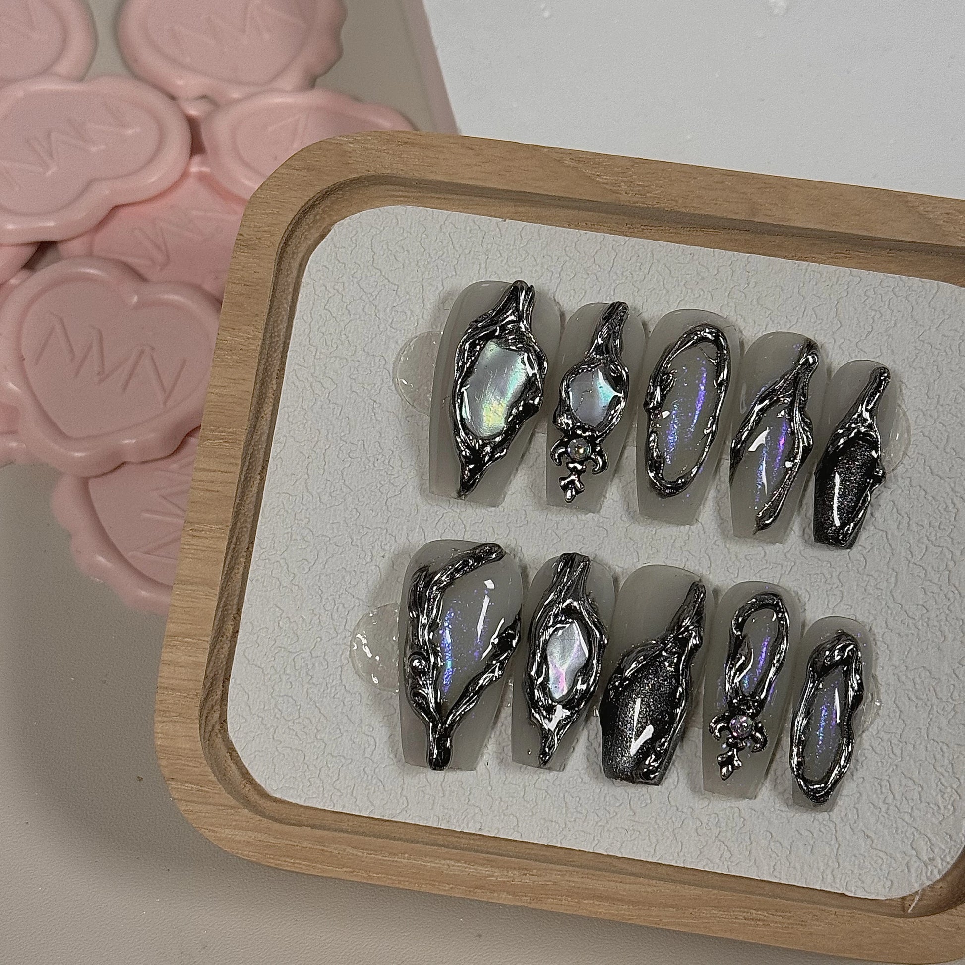 Le nostre press-on nails sono realizzate a mano da professionisti, garantendo una qualità professionale. Riutilizzabili fino a 10 volte, durano fino a 1 mese, offrendoti eleganza e praticità in ogni applicazione
